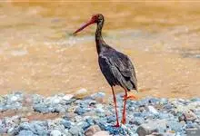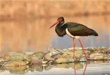 黑鹳是鹳形目鹳科鹳属鸟类,俗称乌鹳、钢鹳、老鹤。黑鹳头、颈和脊均呈黑褐色,故名黑鹳。黑鹳上体羽黑色、并带有绿紫色金属光泽,胸腹部羽白色;嘴、腿均红色;两性相似;成鸟嘴长而直,基部较粗,…全部>>
