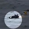 虎鲸,是鲸偶蹄目海豚科虎鲸属哺乳动物。成体体重6600千克,平均体长6-9米;头部略圆,…全部>>