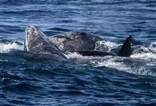 灰鲸,隶属于鲸偶蹄目须鲸亚目灰鲸科,体围比须鲸科的种类大,但比露脊鲸小;它的成体长10至15米,最大体重超过35吨。体形呈纺锤状,躯干粗胖,在鳍肢附近最粗,向尾部逐渐变细。无背鳍,…全部>>
