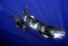 抹香鲸是鲸目、抹香鲸科的海洋哺乳动物。体长可达18米,体重超过50吨,是体型最大的齿鲸,头部可占身体的1/3。头部巨大,下颌较小,仅下颌有牙齿。无背鳍;潜水能力极强,是潜水最深,潜水时间最长的哺乳动物。…全部>>