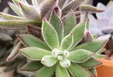 筒叶花月,是景天科青锁龙属的多年生草本植物。植株多分株,灌木状,茎较粗壮,圆柱形,表皮灰褐色;叶片肉质,互生,呈圆筒状,簇生于茎或分枝顶端,叶端呈斜截形,截面为椭圆形;花呈星状,淡白色;花期秋季。…全部>>