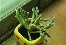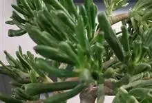 筒叶花月,是景天科青锁龙属的多年生草本植物。植株多分株,灌木状,茎较粗壮,圆柱形,表皮灰褐色;叶片肉质,互生,呈圆筒状,簇生于茎或分枝顶端,叶端呈斜截形,截面为椭圆形;花呈星状,淡白色;花期秋季。…全部>>