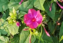 即紫茉莉,英文名:Four-o'clock,Marvel of Peru,为紫茉莉科、紫茉莉属多年生草本植物,一年生栽培。株高50~80cm。根粗壮,茎多分枝而散生。叶对生,卵形或心脏形。花数朵簇生…全部>>