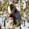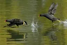 黑水鸡:是鹤形目、秧鸡科的鸟类,共有12个亚种。中型涉禽,体长24-35厘米。嘴长度适中,鼻孔狭长;头具额甲,后缘圆钝;嘴和额甲色彩鲜艳。翅圆形,第2枚初级飞羽最长,或第2枚和第3枚初级飞羽等长,…全部>>