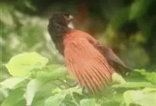 褐翅鸦鹃,是鹃形目鸦鹃科鸦鹃属的鸟类。褐翅鸦鹃的身体为黑色;头颈和胸带蓝紫色金属光泽并具黑亮的羽干纹,下胸至腹部泛金属绿光泽;两翼和肩部为棕栗色,外侧飞羽具暗色羽端,尾羽闪铜绿色光泽;虹膜赤红色,…全部>>