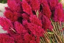 鸡冠花,为苋科青葙属一年生直立草本植物,又名鸡角根、红鸡冠、老来红等,。鸡冠花高30-80厘米,全株无毛且粗壮,分枝少;茎直立、粗壮;单叶互生,叶片长椭圆形至卵状披针形;穗状花序顶生,…全部>>