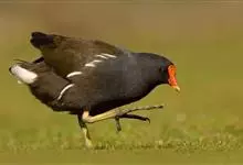 黑水鸡:是鹤形目、秧鸡科的鸟类,共有12个亚种。中型涉禽,体长24-35厘米。嘴长度适中,鼻孔狭长;头具额甲,后缘圆钝;嘴和额甲色彩鲜艳。翅圆形,第2枚初级飞羽最长,或第2枚和第3枚初级飞羽等长,…全部>>