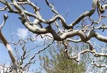 龙爪桑是桑科、桑属桑树的栽培变种,乔木或为灌木,株高可达3米.树冠开张。枝条圆柱形,呈S形扭曲。叶互生,叶片阔卵形,先端尖,锯齿缘。树皮厚,灰色,具不规则浅纵裂;冬芽红褐色,卵形,芽鳞覆瓦状排列,…全部>>