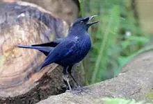 紫啸鸫是雀形目鹟科啸鸫属鸟类,又称黑雀儿,山鸣鸡、乌精。成鸟眼先及颏绒黑色;前额、头顶至背及肩羽和颈侧呈深紫蓝色,羽端具较密集的亮蓝色点斑;腰至尾上覆羽的深紫蓝色较暗而杂黑褐色,…全部>>