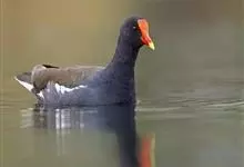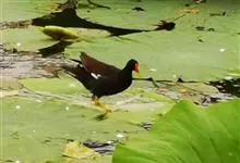 黑水鸡:是鹤形目、秧鸡科的鸟类,共有12个亚种。中型涉禽,体长24-35厘米。嘴长度适中,鼻孔狭长;头具额甲,后缘圆钝;嘴和额甲色彩鲜艳。翅圆形,第2枚初级飞羽最长,或第2枚和第3枚初级飞羽等长,…全部>>