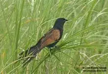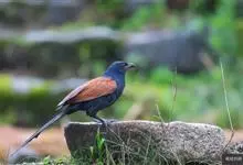 褐翅鸦鹃,是鹃形目鸦鹃科鸦鹃属的鸟类。褐翅鸦鹃的身体为黑色;头颈和胸带蓝紫色金属光泽并具黑亮的羽干纹,下胸至腹部泛金属绿光泽;两翼和肩部为棕栗色,外侧飞羽具暗色羽端,尾羽闪铜绿色光泽;虹膜赤红色,…全部>>
