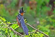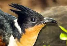 红翅凤头鹃:体长约38厘米,顶冠及凤头黑色,具显眼的直立凤头,背及尾黑色而带蓝色光泽,翅栗红色,喉及胸橙褐色,颈圈白色,腹部近白。虹膜淡红褐色。嘴黑色,下嘴基部近淡土黄色,嘴角肉红色,脚铅褐色。…全部>>