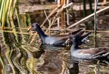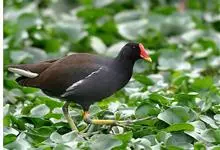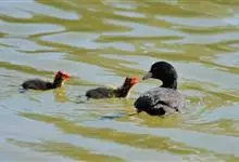 黑水鸡:是鹤形目、秧鸡科的鸟类,共有12个亚种。中型涉禽,体长24-35厘米。嘴长度适中,鼻孔狭长;头具额甲,后缘圆钝;嘴和额甲色彩鲜艳。翅圆形,第2枚初级飞羽最长,或第2枚和第3枚初级飞羽等长,…全部>>