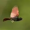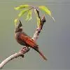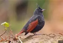凤头鹀:属小型鸣禽,体重21-31克,体长134-175毫米。以头顶的细长羽冠为特征,雄鸟全身几乎均为黑色具蓝色光泽,两翅和尾以及尾上覆羽栗红色。雌鸟具短的褐色羽冠,上体暗橄榄褐色,…全部>>