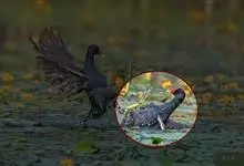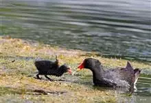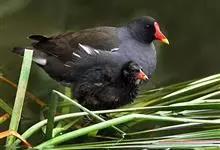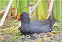 黑水鸡:是鹤形目、秧鸡科的鸟类,共有12个亚种。中型涉禽,体长24-35厘米。嘴长度适中,鼻孔狭长;头具额甲,后缘圆钝;嘴和额甲色彩鲜艳。翅圆形,第2枚初级飞羽最长,或第2枚和第3枚初级飞羽等长,…全部>>
