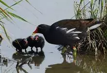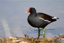 黑水鸡:是鹤形目、秧鸡科的鸟类,共有12个亚种。中型涉禽,体长24-35厘米。嘴长度适中,鼻孔狭长;头具额甲,后缘圆钝;嘴和额甲色彩鲜艳。翅圆形,第2枚初级飞羽最长,或第2枚和第3枚初级飞羽等长,…全部>>