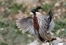 红腹角雉属于鸡形目雉科,雄鸟体羽及两翅主要为深栗红色,满布具黑缘的灰色眼状斑,下体灰斑大而色浅。雌鸟上体灰褐色,下体淡黄色,杂以黑、棕、白斑。全部>>