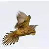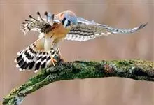 红隼:是隼科、隼属的小型猛禽之一。体重173-335克,体长305-360毫米。翅狭长而尖,尾亦较长,外形和共同爪隼非常相似。雄鸟头蓝灰色,背和翅上覆羽砖红色,具三角形黑斑;腰、尾上覆羽和尾羽蓝灰色,…全部>>