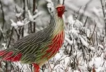 红腹角雉属于鸡形目雉科,雄鸟体羽及两翅主要为深栗红色,满布具黑缘的灰色眼状斑,下体灰斑大而色浅。雌鸟上体灰褐色,下体淡黄色,杂以黑、棕、白斑。全部>>