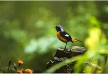 北红尾鸲是雀形目鸫亚科红尾鸲属的一种鸟类。北红尾鸲体长13—15厘米。雄鸟头顶至背石板灰色,下背和两翅黑色,具明显的白色翅斑;腰、尾上覆羽和尾橙棕色;前额基部、头侧、颈侧、颏喉和上胸黑色,…全部>>