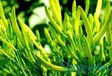 黄花菜 别名金针菜、柠檬萱草等,是阿福花科萱草属的多年生宿根性草本植物。根近肉质,中下部常有纺锤状膨大;叶7~20枚,长50~130cm,宽6~25mm;花葶长短不一,花梗较短,花多朵,…全部>>