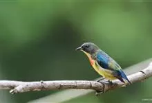 红胸啄花鸟:体重5-10克,体长60-92毫米。体形纤小。雄鸟上体呈辉亮的金属绿色;下体棕黄,胸部具一朱红色块斑,极易与其他啄花鸟区别。雌鸟上体呈橄榄绿,下体棕黄色。虹膜褐色,嘴褐黑色或角灰色,…全部>>