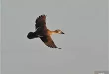 栗树鸭体长37-42厘米,体重400-600克,是中等体型的红褐色鸭。头顶深褐,头及颈皮黄色,背褐而具棕色扇贝形纹,下体红褐。左右翅各有1枚形状特殊的飞羽,飞行中与空气摩擦能发出轻而尖的啸声。…全部>>