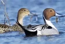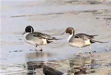 针尾鸭,是雁形目鸭科鸭属动物。体长约75厘米的大型戏水鸭,雄鸟头暗褐色,颈侧有白色纹路,向下与胸部白色相连,中央一对尾羽特别长;背灰色,有黑色细纹;翼镜绿色,胸腹白色,尾下覆羽黑色;雌鸟体羽大致为褐色,…全部>>