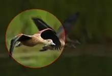 栗树鸭体长37-42厘米,体重400-600克,是中等体型的红褐色鸭。头顶深褐,头及颈皮黄色,背褐而具棕色扇贝形纹,下体红褐。左右翅各有1枚形状特殊的飞羽,飞行中与空气摩擦能发出轻而尖的啸声。…全部>>
