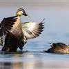 斑嘴鸭是雁形目鸭科鸭属鸟类。李文华,旭日干,中国自然资源通典 辽宁卷,内蒙古教育出版社,2015,第361页雄鸟体羽大部棕褐色;嘴蓝黑色,先端黄色,嘴基至耳区贯眼线黑褐色;虹膜黑褐色,…全部>>