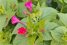 即紫茉莉,英文名:Four-o'clock,Marvel of Peru,为紫茉莉科、紫茉莉属多年生草本植物,一年生栽培。株高50~80cm。根粗壮,茎多分枝而散生。叶对生,卵形或心脏形。花数朵簇生…全部>>