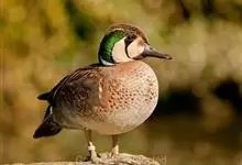 绿翅鸭是小型鸭类,体长37厘米,体重约0.5千克。嘴脚均为黑色。雄鸟头至颈部深栗色,头顶两侧从眼开始有一条宽阔的绿色带斑一直延伸至颈侧,尾下覆羽黑色,两侧各有一黄色三角形斑,在水中游泳时,极为醒目。…全部>>