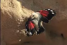 红翅旋壁雀:体重15-23克,体长120-178毫米。是一种体型略小的鸟类。尾短而嘴长,翼具醒目的绯红色斑纹。飞羽黑色,外侧尾羽羽端白色显著,初级飞羽两排白色点斑飞行时成带状。繁殖期雄鸟脸及喉黑色,…全部>>