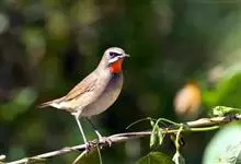 红点颏:是鸟纲、鹟科的鸣禽。又名西伯利亚歌鸲。体长14-17厘米,体重16-27克。雄鸟头部、上体主要为橄榄褐色。眉纹白色。颏部、喉部红色,周围有黑色狭纹。胸部灰色,腹部白色。雌鸟颏部、喉部不呈赤红色,…全部>>