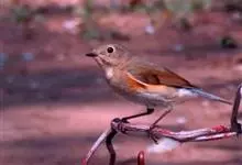 红胁蓝尾鸲俗名:蓝点冈子、蓝尾巴根子、蓝尾杰、蓝尾欧鸲。体型略小而喉白的鸲。特征为橘黄色两胁与白色腹部及臀成对比。雄鸟上体蓝色,眉纹白;亚成鸟及雌鸟褐色,尾蓝。…全部>>