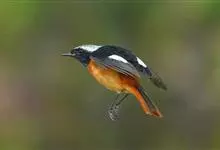 北红尾鸲是雀形目鸫亚科红尾鸲属的一种鸟类。北红尾鸲体长13—15厘米。雄鸟头顶至背石板灰色,下背和两翅黑色,具明显的白色翅斑;腰、尾上覆羽和尾橙棕色;前额基部、头侧、颈侧、颏喉和上胸黑色,…全部>>
