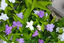 鸳鸯茉莉,茄科鸳鸯茉莉属常绿灌木植物,高1米。茎皮深褐色;分枝力强;单叶互生纸质;花簇生,聚伞花序,花冠五裂花瓣锯齿,含苞时蘑菇状深紫色,花香浓郁;花期4-10月。鸳鸯茉莉花朵芳香,…全部>>