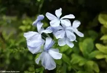 蓝花丹是白花丹科、白花丹属的常绿亚灌木。高约1米;叶薄,呈菱状卵形至狭长卵形;穗状总状花序,总花梗短,花冠淡蓝色至蓝白色,呈倒卵形,苞片呈线状狭长卵形,小苞呈狭卵形或长卵形,…全部>>