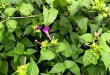 即紫茉莉,英文名:Four-o'clock,Marvel of Peru,为紫茉莉科、紫茉莉属多年生草本植物,一年生栽培。株高50~80cm。根粗壮,茎多分枝而散生。叶对生,卵形或心脏形。花数朵簇生…全部>>