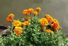 万寿菊是菊科万寿菊属一年生草本植物,别名孔雀菊、缎子花、臭菊花、西番菊、红黄草、小万寿菊、臭芙蓉、孔雀草。万寿菊茎近基部分枝。叶羽状分裂,长5-10厘米,宽4-8厘米,裂片长椭圆形或披针形,具锐齿,…全部>>