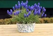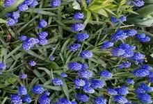 葡萄风信子,是天门冬科蓝壶花属的多年生草本优良观花地被植物,为小型花卉球根植物。根具鳞茎,卵形或近球形,株高5-10cm;基生叶半圆柱状线形;花葶不分枝,总状花序,长椭圆状柱形;花深蓝色,近球形,坛状,…全部>>