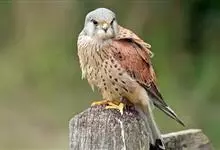 红隼:是隼科、隼属的小型猛禽之一。体重173-335克,体长305-360毫米。翅狭长而尖,尾亦较长,外形和共同爪隼非常相似。雄鸟头蓝灰色,背和翅上覆羽砖红色,具三角形黑斑;腰、尾上覆羽和尾羽蓝灰色,…全部>>