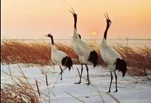 丹顶鹤:是鹤科、鹤属的一种大型涉禽,体长120-160厘米。颈、脚较长,通体大多白色,头顶鲜红色,喉和颈黑色,耳至头枕白色,脚黑色,站立时颈、尾部飞羽和脚黑色,头顶红色,…全部>>