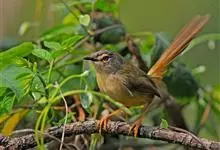 黑喉山鹪莺:体长16厘米,是一种长尾的褐色鹪莺。具明显的白色眉纹及形长的尾。特征为胸具黑色纵纹。上体褐色,两胁黄褐,腹部皮黄;脸颊灰,具明显的白色眉纹及形长的尾。无下髭纹,下体少黑色。虹膜浅褐色,…全部>>
