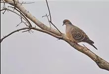 珠颈斑鸠,别名花斑鸠、珍珠鸠、花脖斑鸠、鸪鹪,是鸠鸽科副斑鸠属鸟类。体型中等,体长27~34cm,体重120~205g,雌鸟和雄鸟羽色相似,但雌鸟不如雄鸟羽色亮泽。珠颈斑鸠前额至头顶羽色稍淡,…全部>>