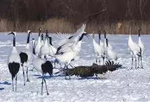 丹顶鹤:是鹤科、鹤属的一种大型涉禽,体长120-160厘米。颈、脚较长,通体大多白色,头顶鲜红色,喉和颈黑色,耳至头枕白色,脚黑色,站立时颈、尾部飞羽和脚黑色,头顶红色,…全部>>