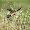 红隼:是隼科、隼属的小型猛禽之一。体重173-335克,体长305-360毫米。翅狭长而尖,尾亦较长,外形和共同爪隼非常相似。雄鸟头蓝灰色,背和翅上覆羽砖红色,具三角形黑斑;腰、尾上覆羽和尾羽蓝灰色,…全部>>