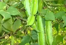 四棱豆 DC.)是豆科四棱豆属一年生或多年生攀援草本植物。茎长2-3米,有块根,叶柄较长,小叶卵状三角形;花序腋生,花瓣为浅蓝色;荚果四棱状,为黄绿或绿色,有时具有红色斑点,有锯齿边缘;种子8-17个,…全部>>