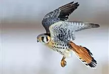 红隼:是隼科、隼属的小型猛禽之一。体重173-335克,体长305-360毫米。翅狭长而尖,尾亦较长,外形和共同爪隼非常相似。雄鸟头蓝灰色,背和翅上覆羽砖红色,具三角形黑斑;腰、尾上覆羽和尾羽蓝灰色,…全部>>