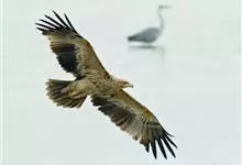 白肩雕:又名御雕,是大型猛禽。体长73-84厘米。体羽黑褐色,头和颈较淡,肩部有明显的白斑,在黑褐色的体羽上极为醒目,很远即可看见,这是区别其他雕的主要特征。滑翔时两翅平直,滑翔和翱翔时两翅亦不上举…全部>>